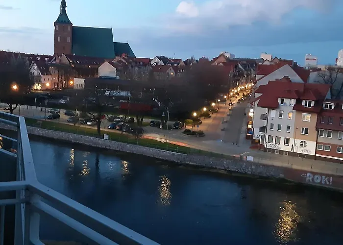 Jasny Apartament Z Widokiem Na Kolobrzeska Katedre Kołobrzeg ligger inom 19 minuters promenad från Kołobrzeski Skansen Morski och har utsikt över floden. WiFi erbjuds för både affärs- och fritidsaktiviteter.